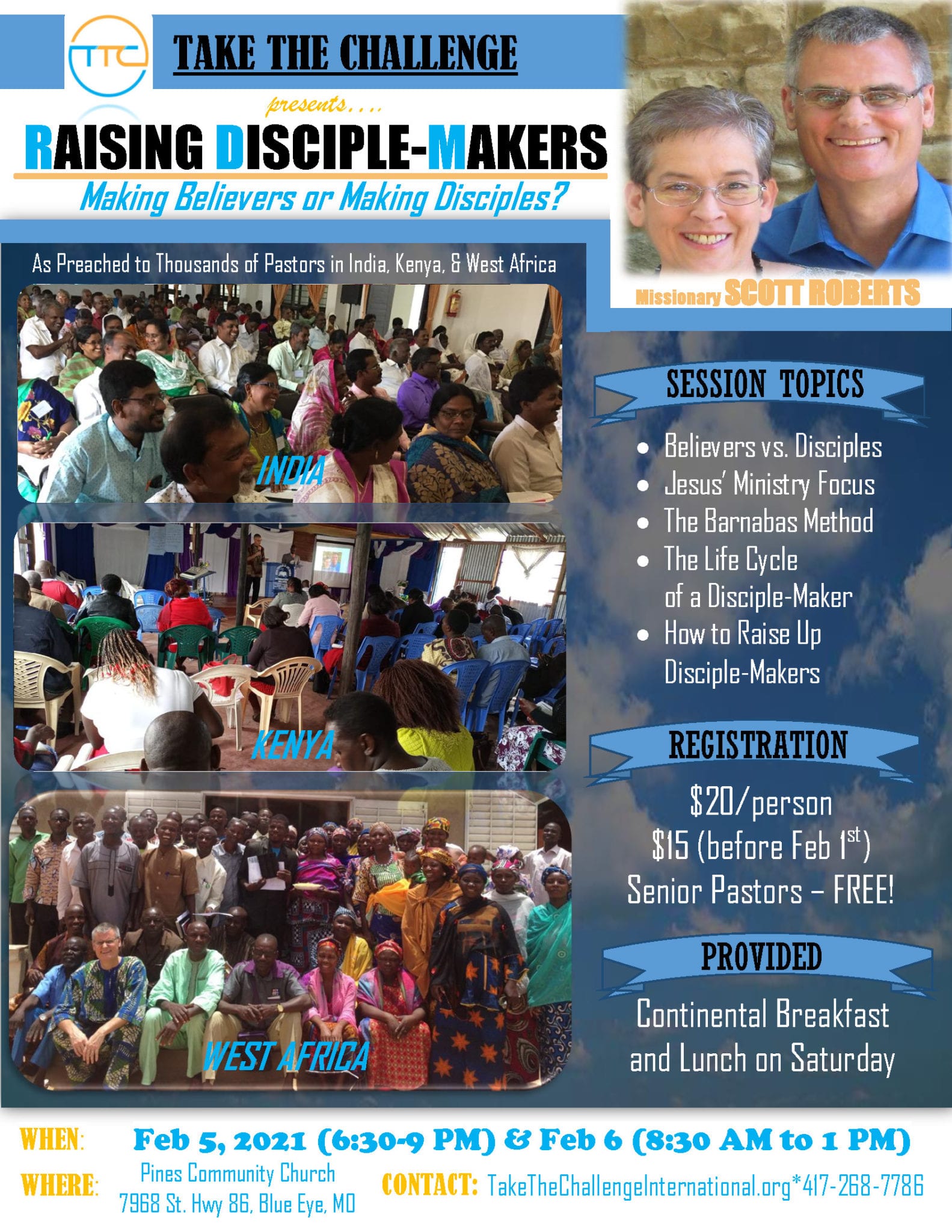 Registration – $20/person ($15 before Jan 11), Sr Pastors FREE